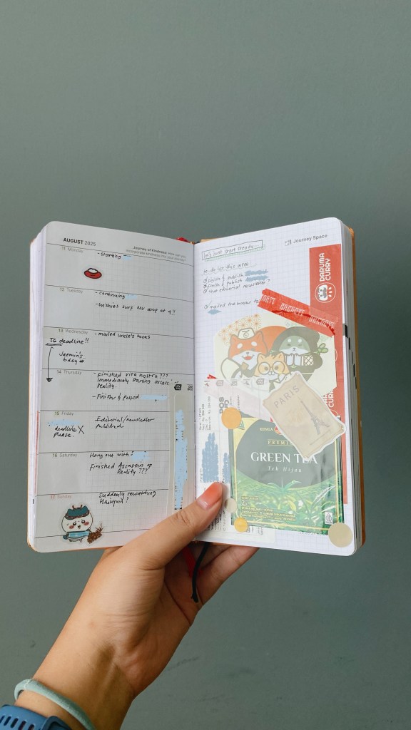 Also, since I was struggling to fill the blank space on the right, I turned it into a mini junk journal for things that I’ve bought that week. Not every week is filled like this, but it surely soothes me a bit because at least it’s not completely empty!