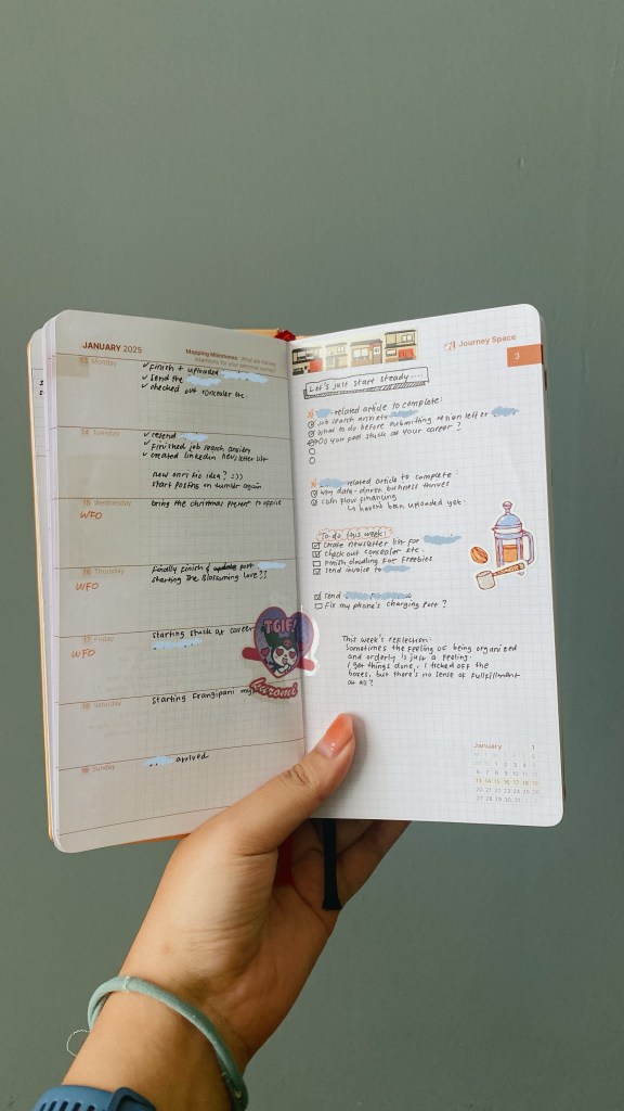I found this planner through a mutual’s post on Instagram. This weekly planner is from Life Plan Journal, and what I have is their one-year, dated 2025 planner in travel size. They also have another size in A5, but I chose the travel size because it’s simpler and suits my needs more.